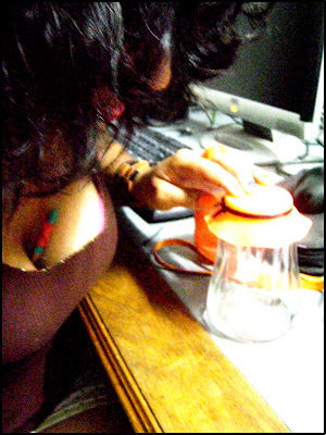 La naranja salió de la ducha y se fué a buscar un frasquito pa' poner al bicho porque pensó que ahí corría peligro.